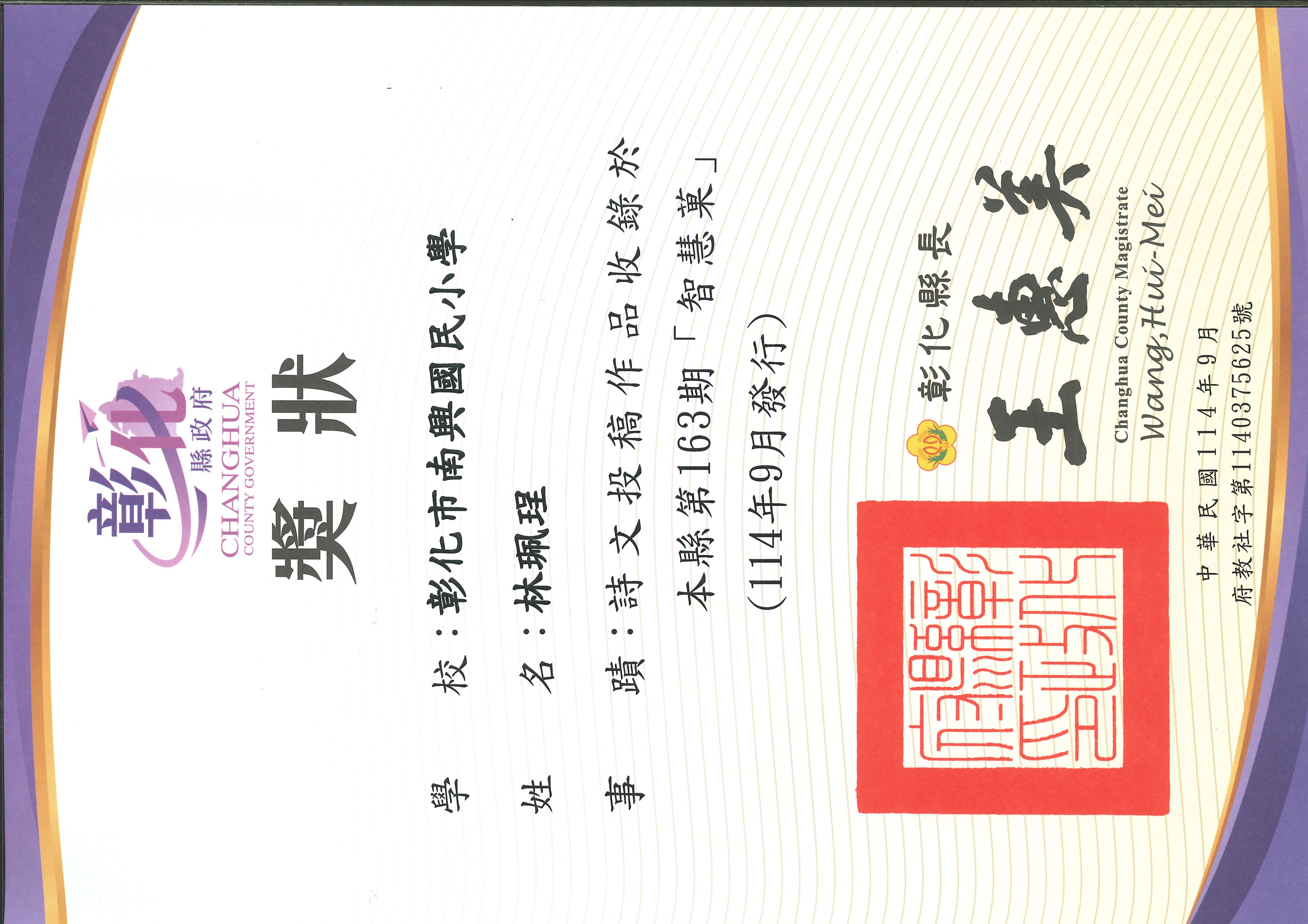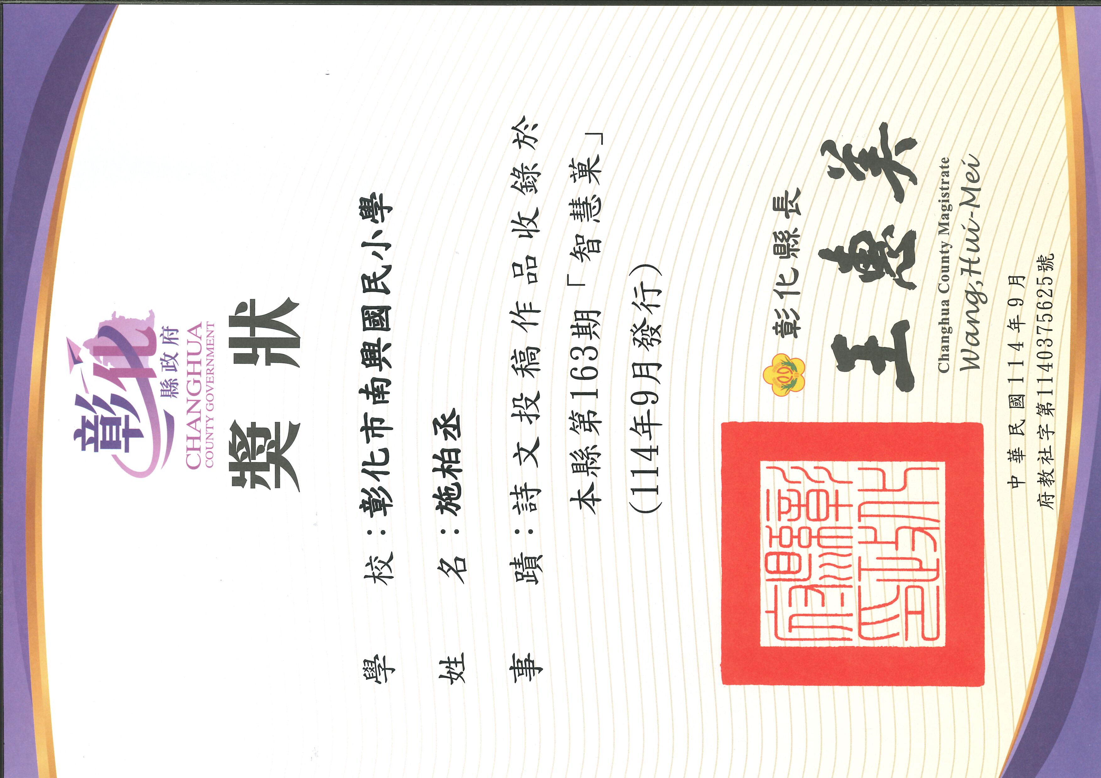 賀!本校學生施柏丞、鄭頤陽、洪梓瑜、林珮珵藝文作品獲智慧菓刊...