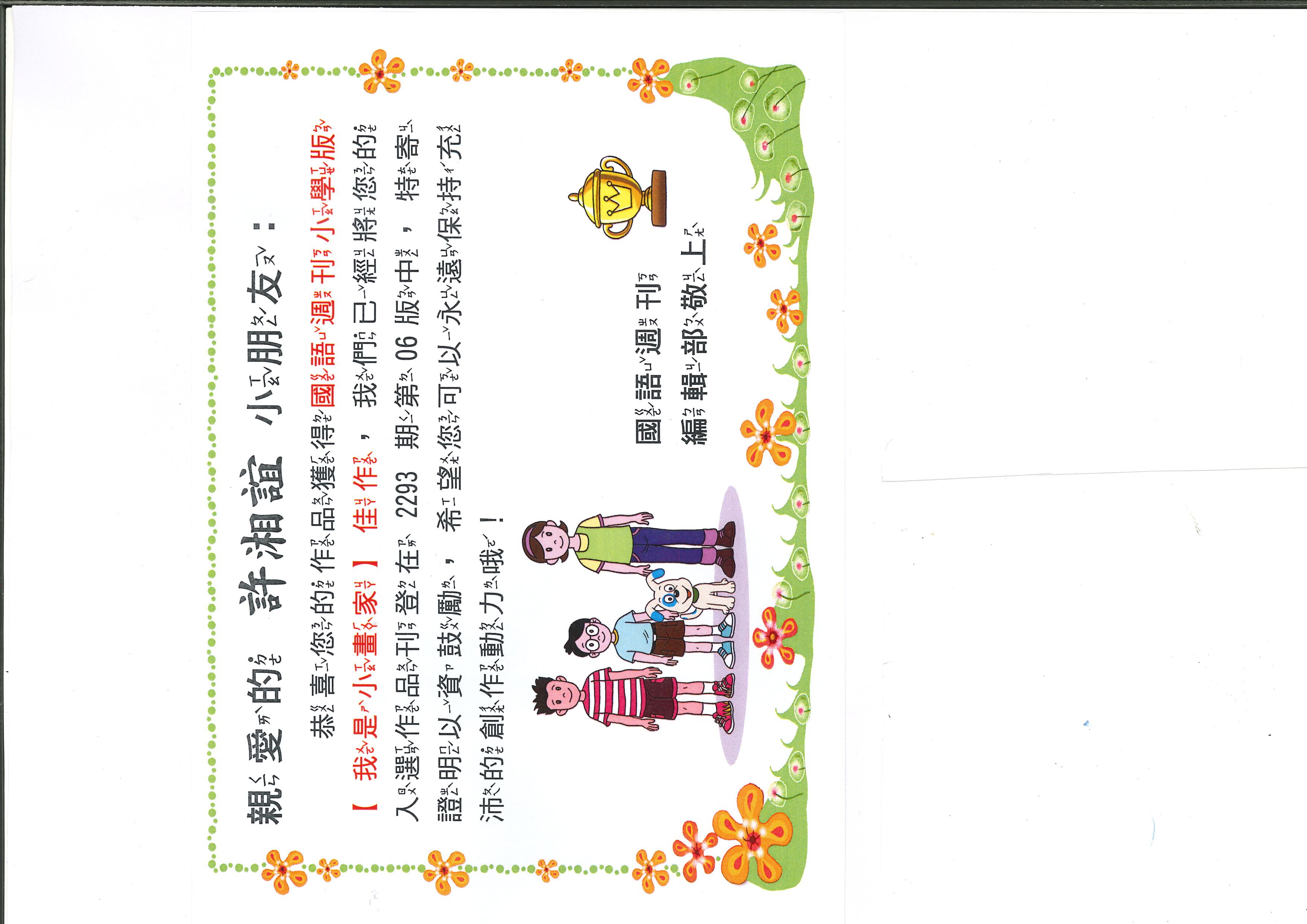 賀!本校四年乙班許湘誼作品獲國語週刊2293期刊登