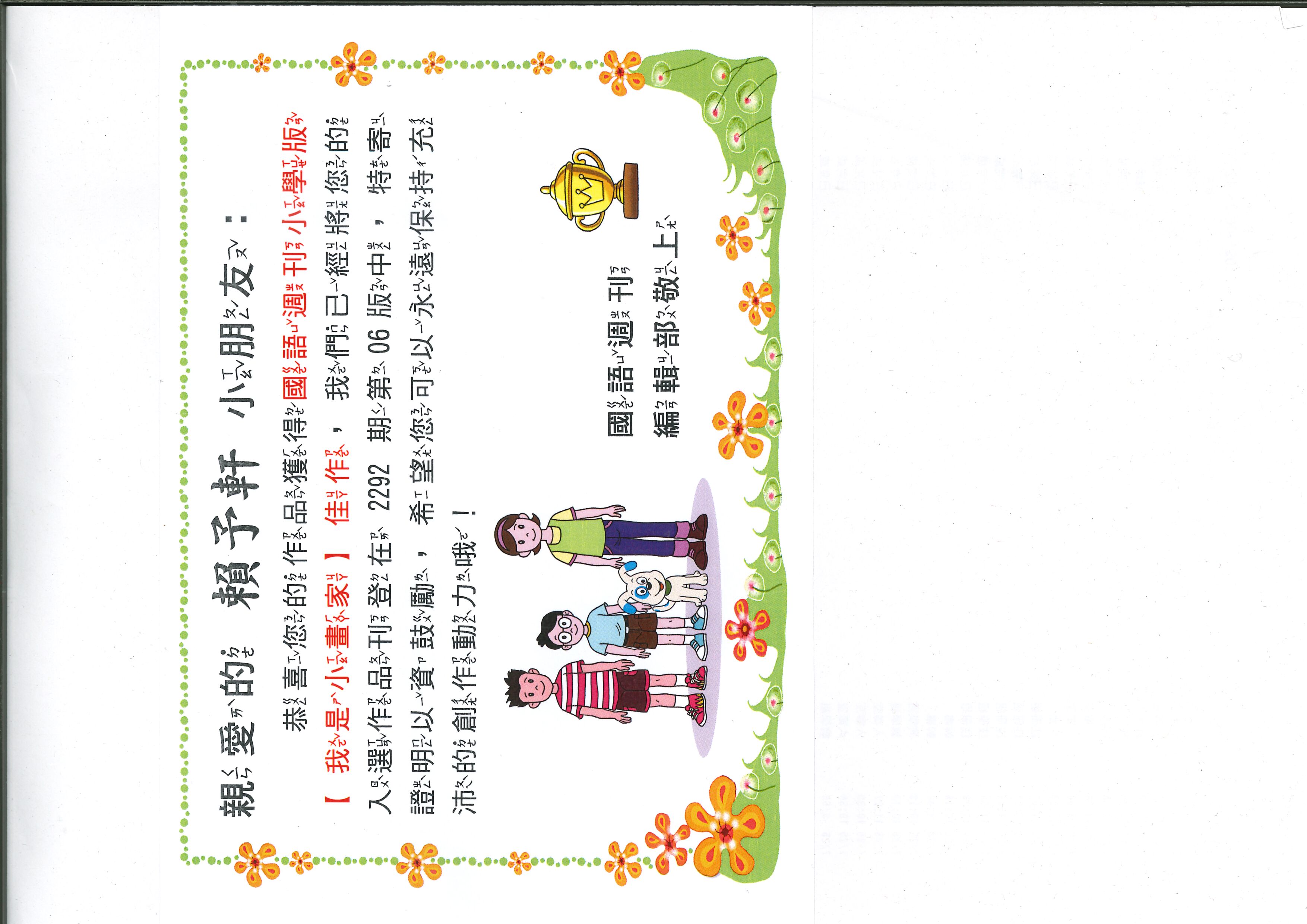 賀!二年戊班賴予軒圖畫獲國語週刊第2293期刊登