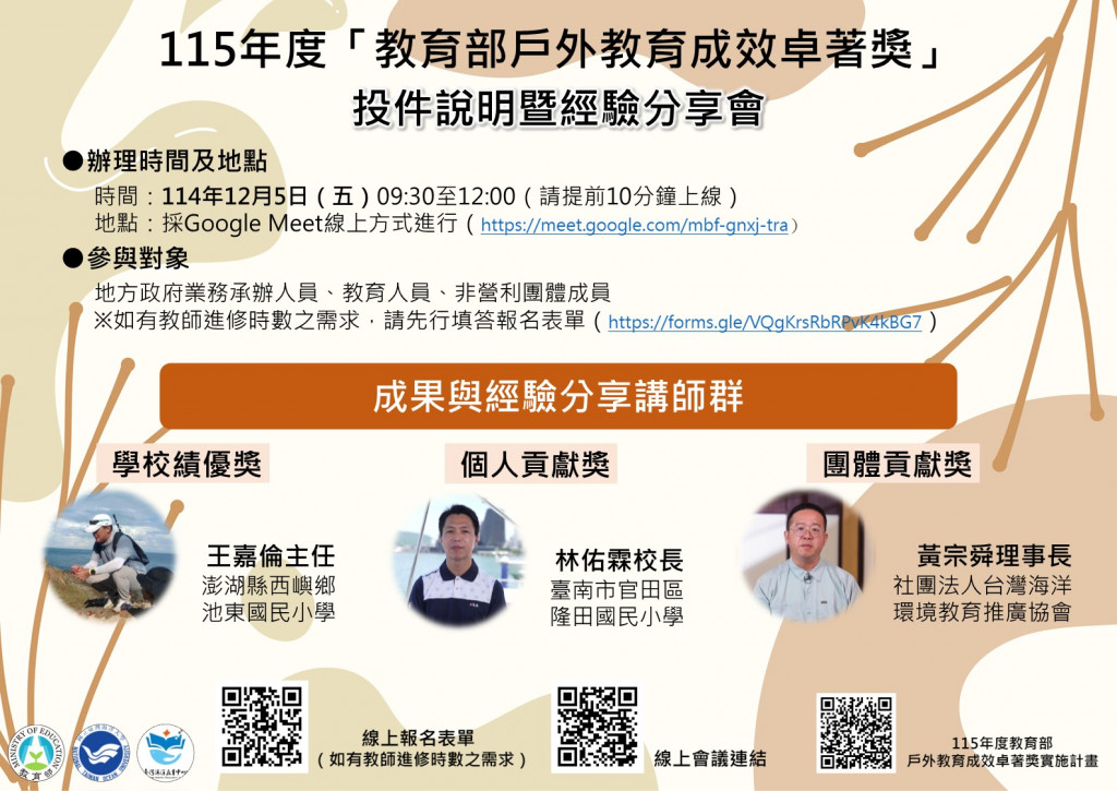「115年度教育部戶外教育成效卓著獎投件說明暨經驗分享會」