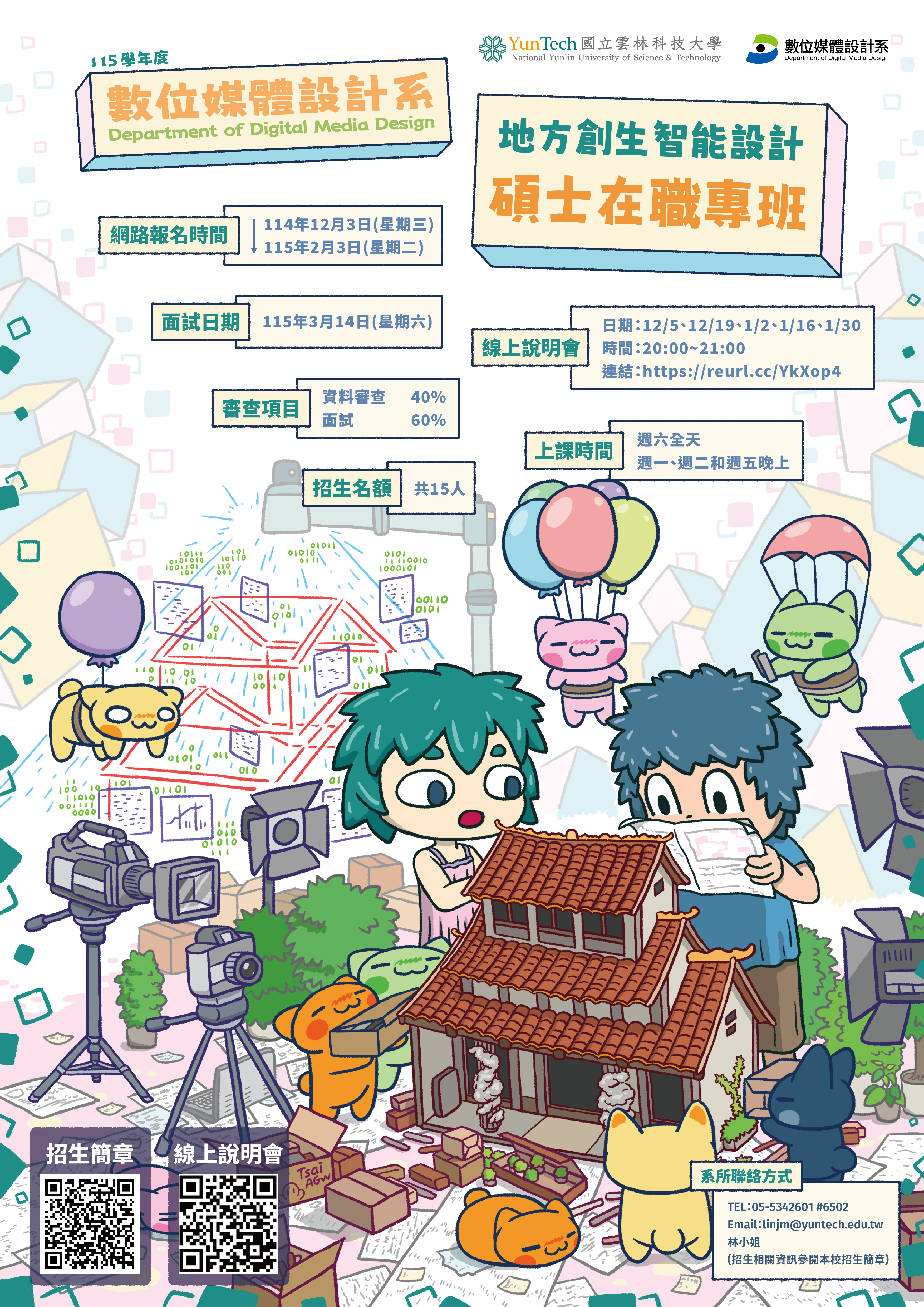 國立雲林科技大學數位媒體設計系115學年度「地方創生智能設計碩士在職專班」招生簡章