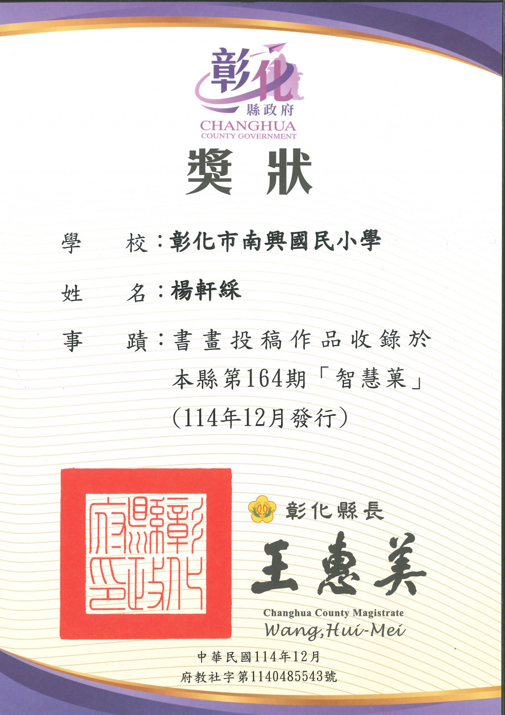 賀!本校學生陳筱靜、楊軒綵圖畫作品獲智慧菓164期刊登