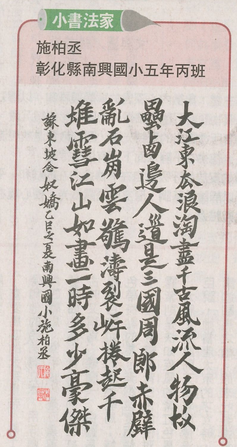 賀!五年丙班施柏丞作品獲人間福報第9355號刊登!