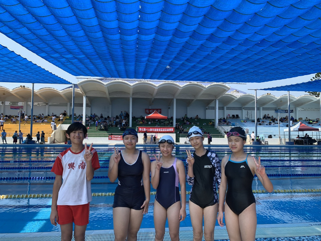 六丙余芮妤 50公尺自由式第八名200公尺自由式第三名.200公尺自由式接力第五名.200混合式接力第五名